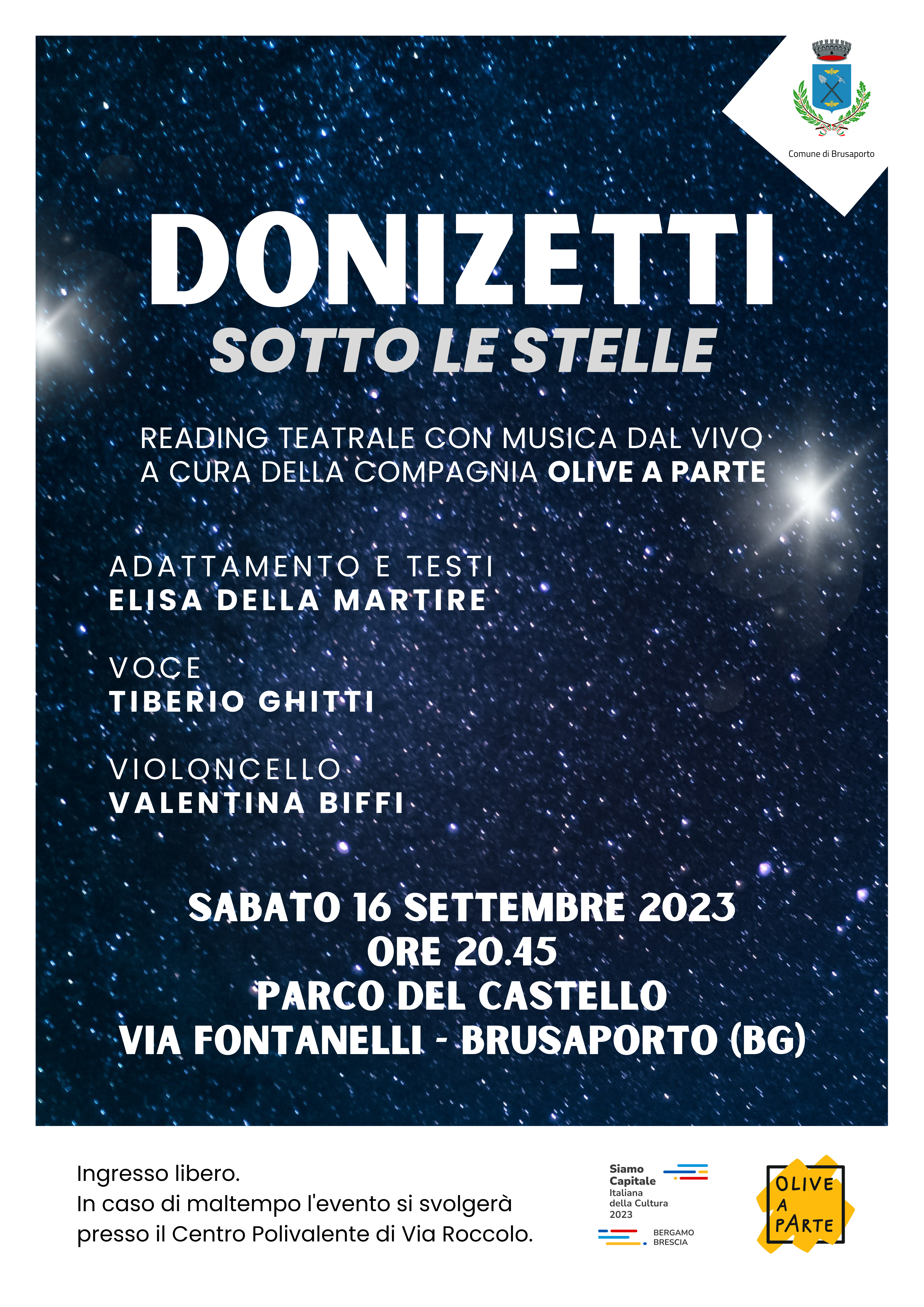 Appuntamento per sabato 16 settembre 2023 alle ore 20:45 presso il Parco del Castello.