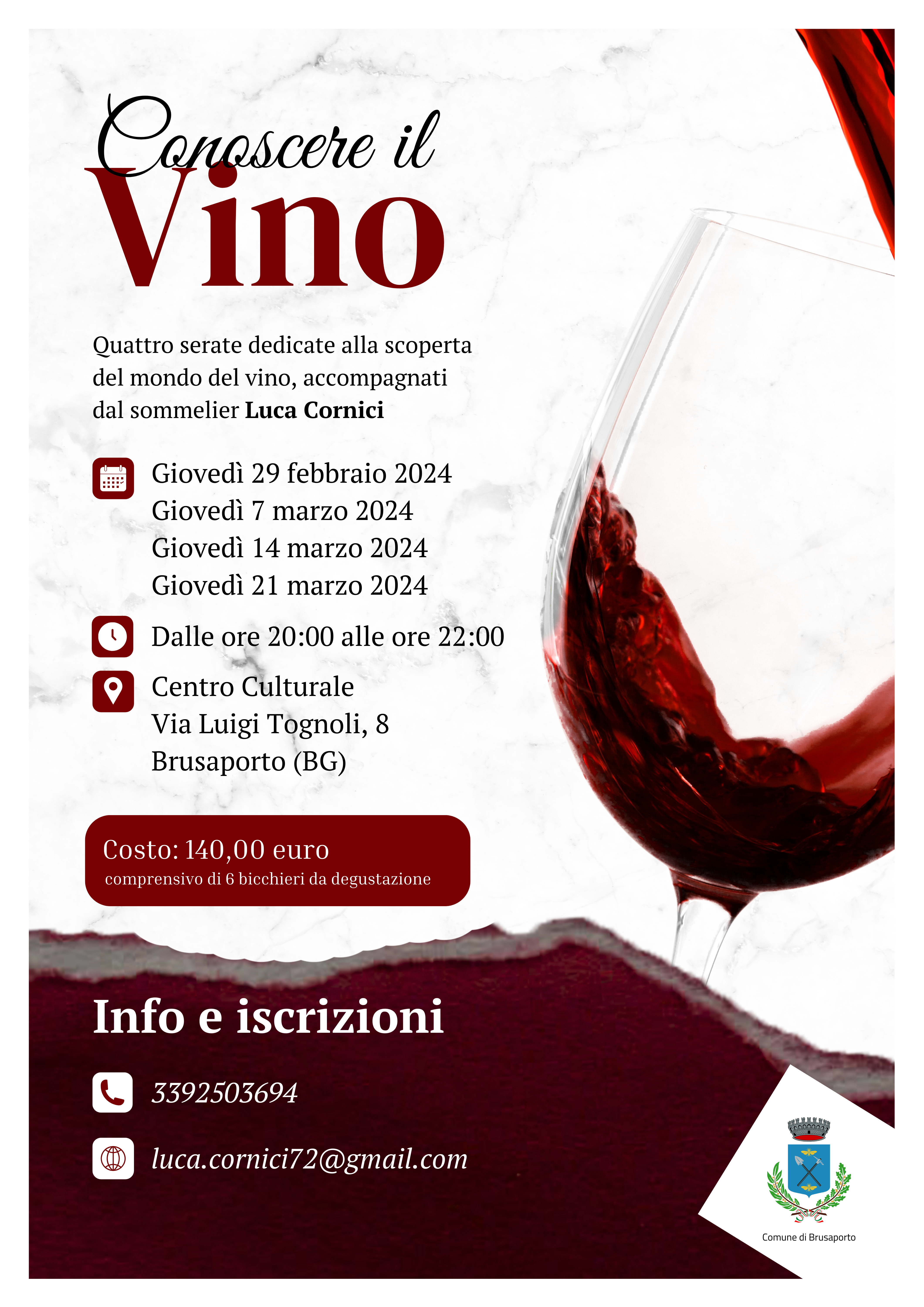 Sono in arrivo quattro serate dedicate alla scoperta del mondo del vino, accompagnati dal sommelier Luca Cornici.
