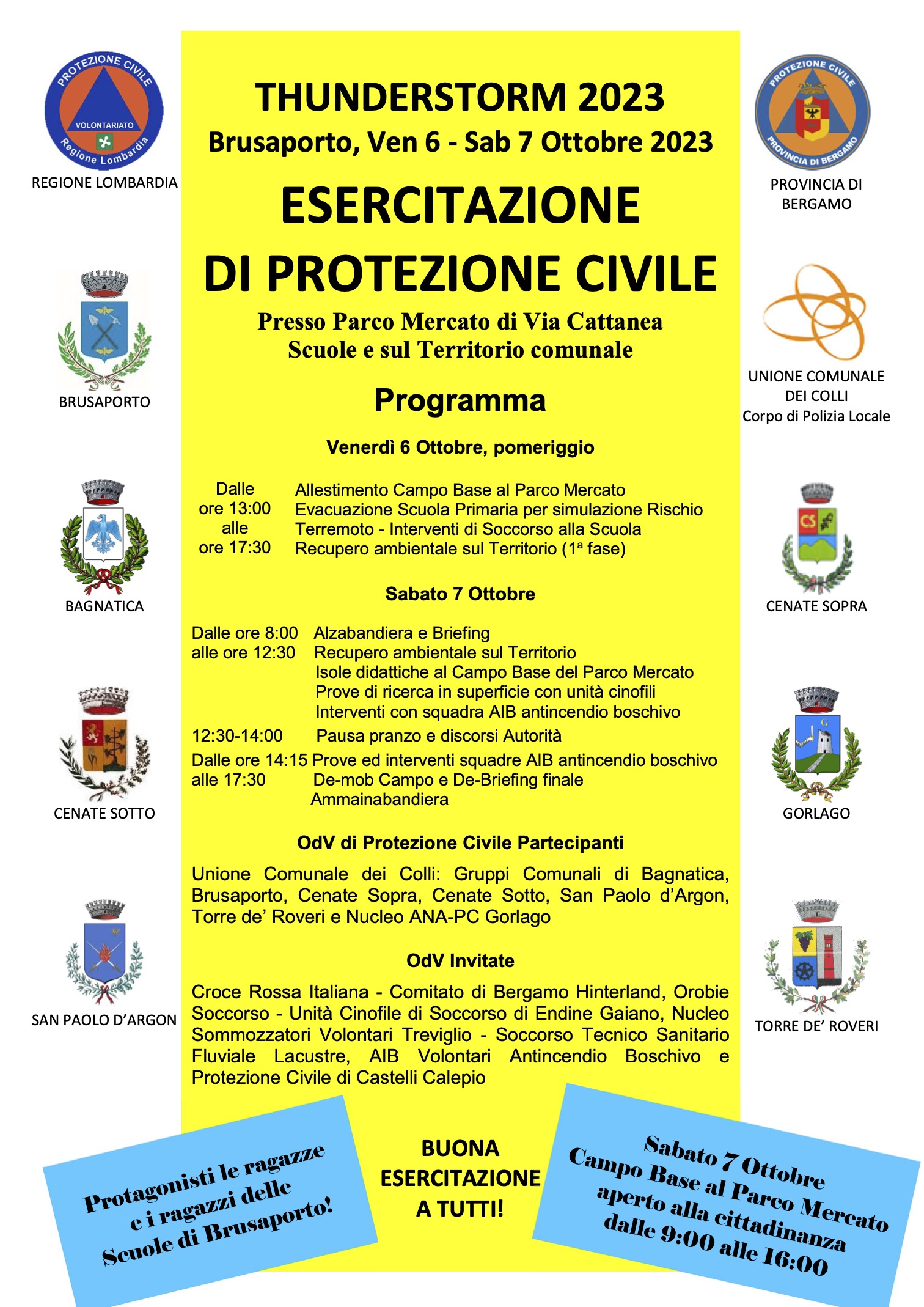 Il Gruppo Comunale di Protezione Civile di Brusaporto è pronto per Thunderstorm, l'esercitazione annuale di protezione civile dell'Unione dei Colli.