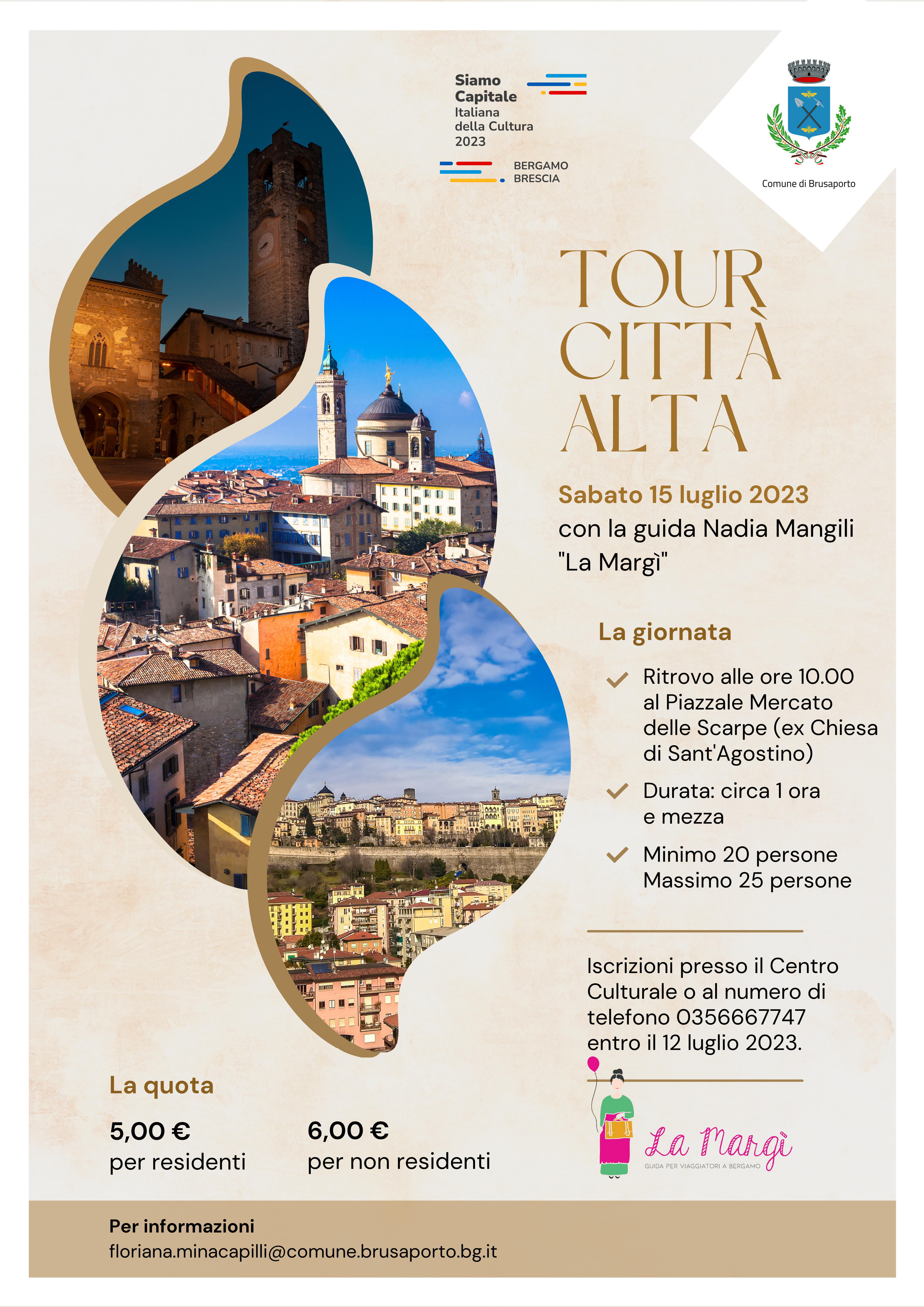 In occasione di Bergamo Brescia Capitale della Cultura 2023, il Comune di Brusaporto organizza un tour alla scoperta di Città Alta.