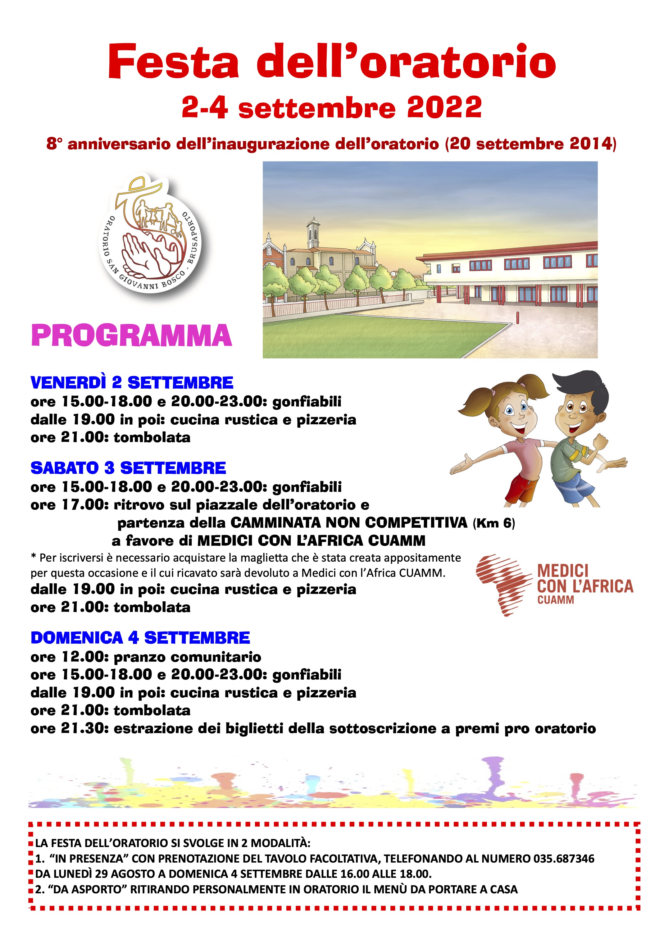 Brusaporto non si ferma mai: ritorna la Festa dell'Oratorio, dal 2 al 4 settembre 2022.