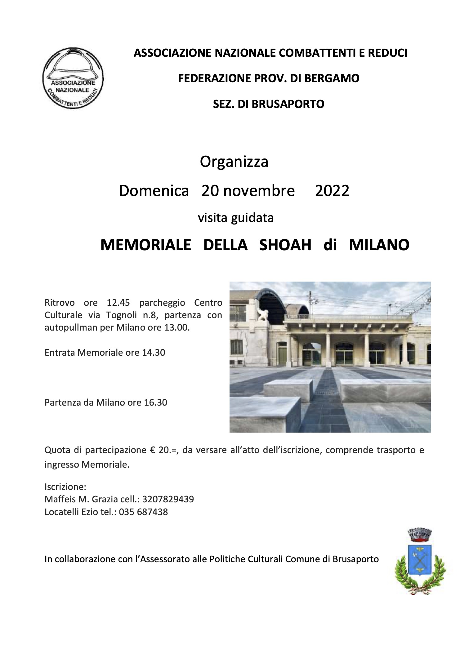 L'Associazione Nazionale Combattenti e Reduci - sezione di Brusaporto, in collaborazione con l'Assessorato alle Politiche Culturali, organizza la visita guidata al memoriale della Shoah di Milano.