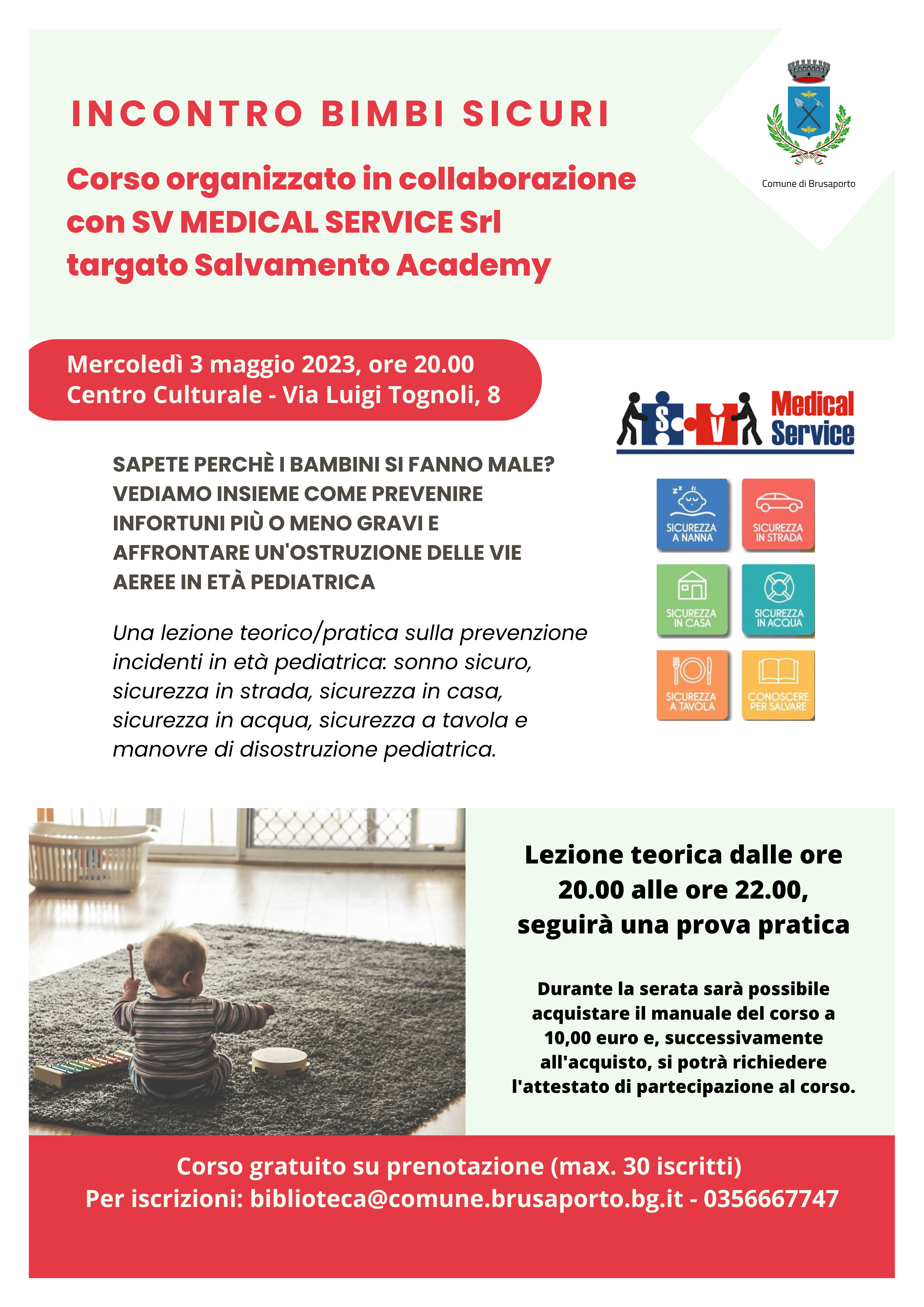 Corso organizzato in collaborazione con SV Medical Service Srl targato Salvamento Academy, mercoledì 3 maggio 2023 alle ore 20.00 al Centro Culturale.