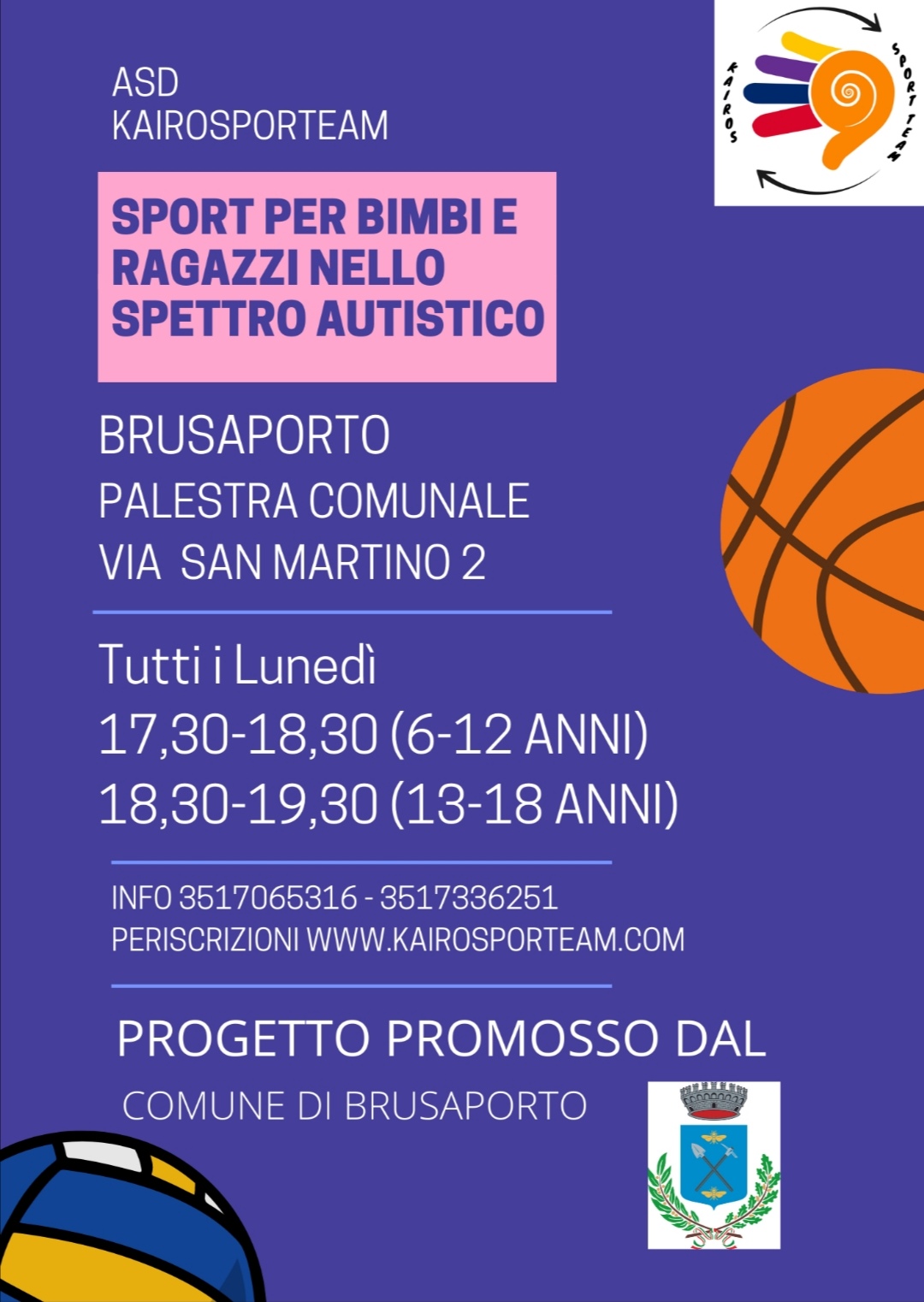 Ritornano le attività sportive promosse dal Comune di Brusaporto con l'ASD Kairo Sport Team per bambini/e e ragazzi/e nello spettro autistico.